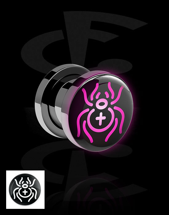 Tunel koji se priteže (kirurški čelik, srebrna, sjajna završna obrada) s LED dodatkom i motivom "pauk"