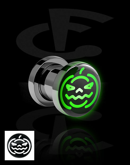 Tunel koji se priteže (kirurški čelik, srebrna, sjajna završna obrada) s LED dodatkom i Dizajnom za Noć vještica "luda bundeva"