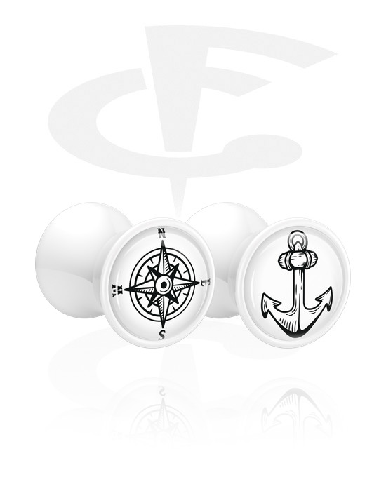 1 par dvostrukih proširenih čepića (akril, bijeli) s motivom "sidro i kompas"