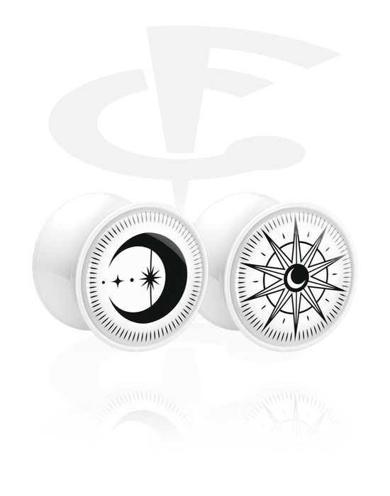 1 par dvostrukih proširenih čepića (akril, bijeli) s motivom "sunce i mjesec"