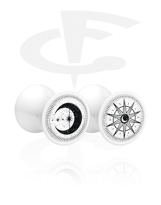1 par dvostrukih proširenih čepića (akril, bijeli) s motivom "sunce i mjesec"