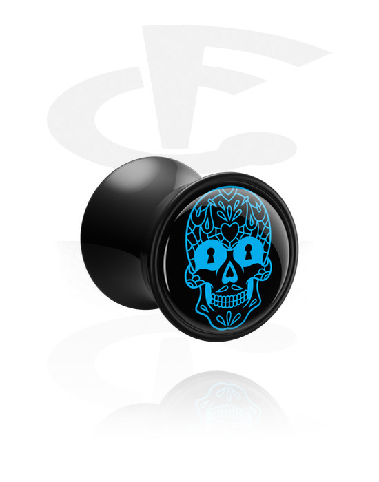 Dvostruki prošireni čepić (akril, crni) s šarenim dizajnom šećerne lubanje "Dia de Los Muertos"