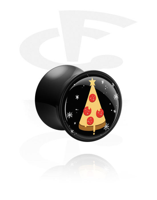 Dvostruki prošireni čepić (akril, crni) s Božićnim motivom "pizza božićno drvce"