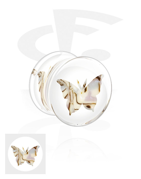 Dvostruki prošireni čepić (akril, proziran) s umetkom s dizajnom leptira u raznim uzorcima