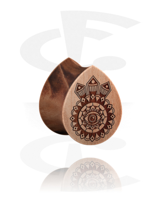 Dvostruki prošireni čepić u obliku suze (drvo) s laserskim graviranjem "oko"
