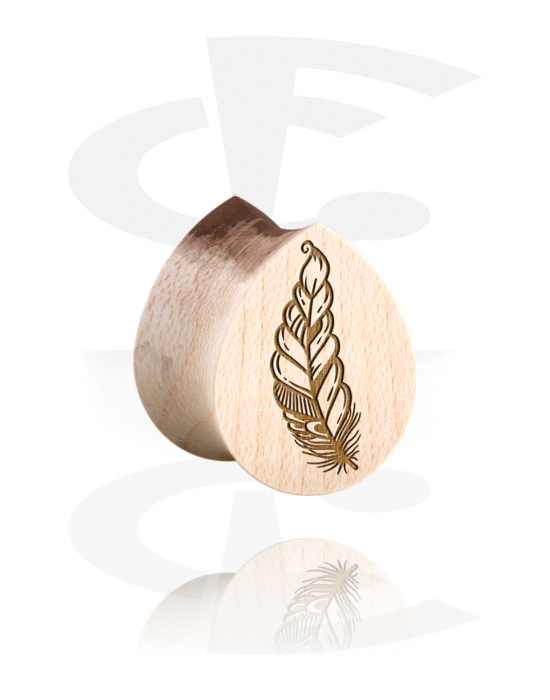 Dvostruki prošireni čepić u obliku suze (drvo) s laserskim graviranjem "pero"