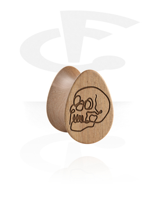 Dvostruki prošireni čepić u obliku suze (drvo) s laserskim graviranjem "lubanja"