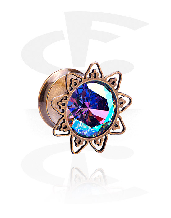 Dvostruki prošireni tunel (kirurški čelik, antikni bakar) s kristalnim kamenom