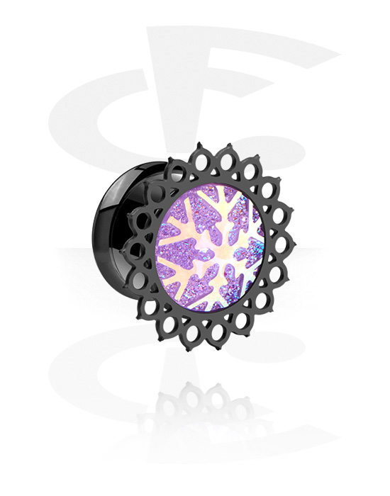 Dvostruki prošireni tunel (kirurški čelik, crna, sjajna završna obrada) s dizajnom pahulje u raznim bojama