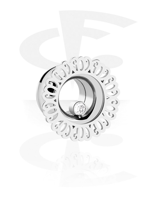 Dvostruki prošireni tunel (kirurški čelik, srebrna, sjajna završna obrada) s kristalnim kamenom