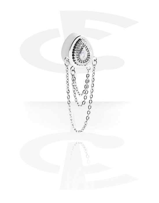 Dvostruki prošireni čepić u obliku suze (kirurški čelik, srebrna, sjajna završna obrada) s kristalnim kamenom i lancem