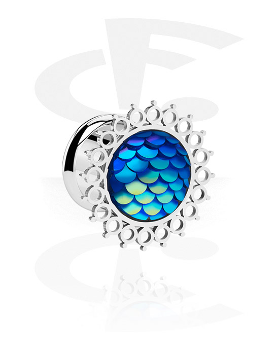 Dvostruki prošireni tunel (kirurški čelik, srebrna, sjajna završna obrada) s dizajnom ribljih ljuski