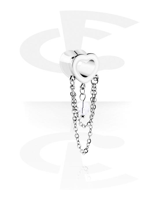 Dvostruki prošireni tunel u obliku srca (kirurški čelik, srebrna, sjajna završna obrada) s lancem