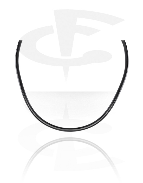 A must-have basic: Thin choker necklace made of synthetic leather with a threaded clasp. Looks great on its own or with one of our pendants to go with it. Or two, or three...