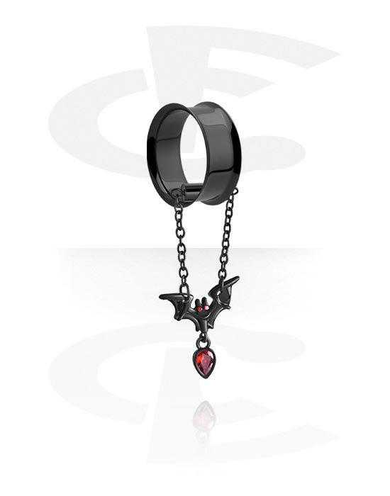 Double flared tunnel (surgical steel, black) val vel bat design és Kristálykövek