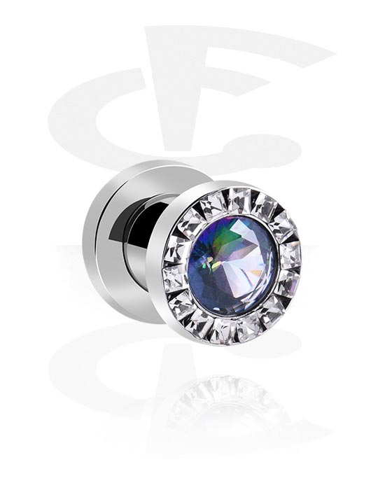 Screw-on tunnel (surgical steel, silver) val vel diamond look és Kristálykövek