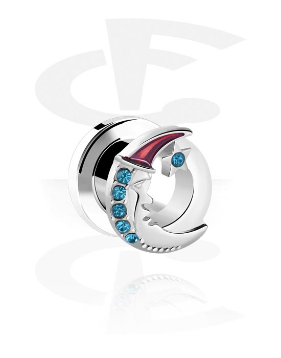 Screw-on tunnel (surgical steel, silver) val vel Hold dizájn és Kristálykövek