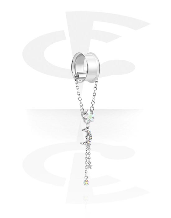 Double flared tunnel (surgical steel, silver) val vel Kristály csillag és Félhold dizájn