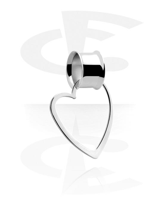 Double flared tunnel (surgical steel, silver) val vel heart-shaped creole és lánc
