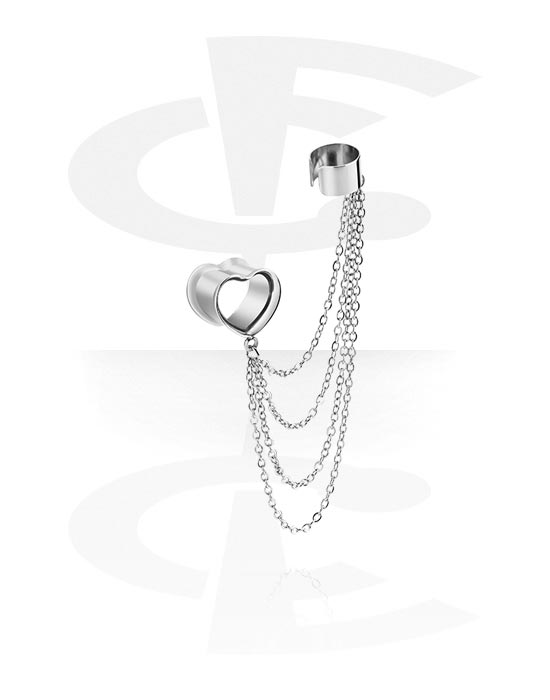 Heart-shaped double flared tunnel (surgical steel, silver, shiny finish) val vel lánc