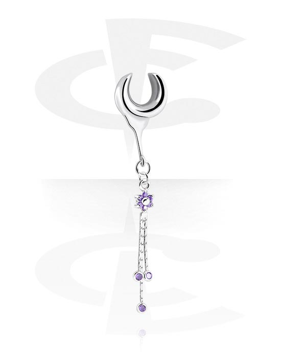 Half tunnel (surgical steel, silver, shiny finish) val vel virág dísz és Kristálykövek