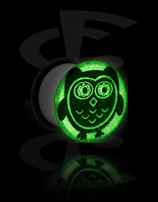 "Glow in the dark" single flared plug (acrylic) val vel Bagoly dizájn és O-gyűrű