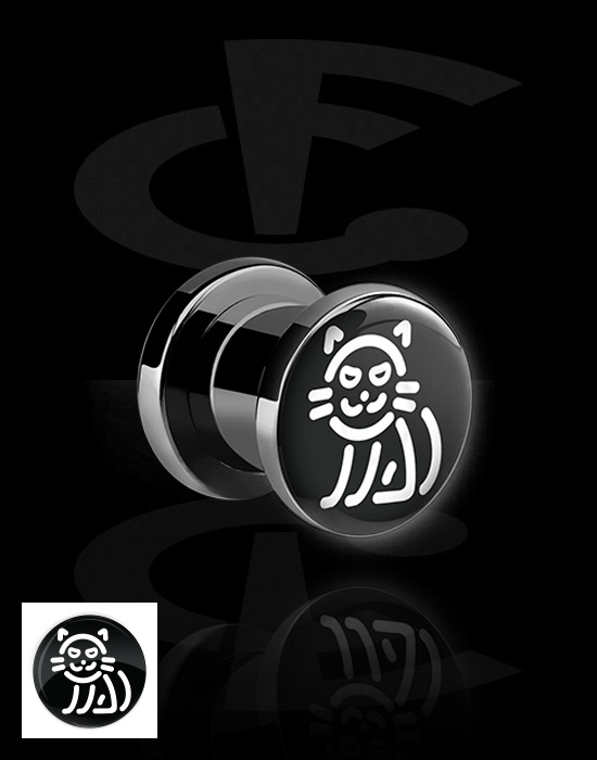Screw-on tunnel (surgical steel, silver) val vel LED attachment és Macska dizájn