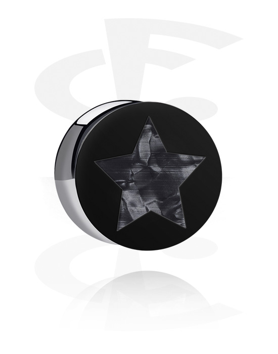 Double flared plug (acrylic, black) val vel Csillag dizájn és Igazgyöngy dizájn
