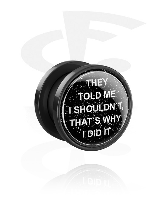 Screw-on tunnel (acrylic,black) val vel "They told me I shouldn't, that's why I did it" lettering