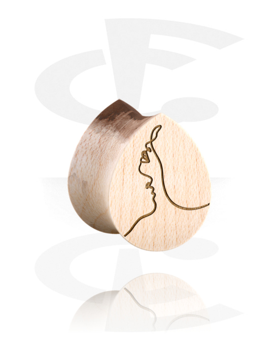 Tear-shaped double flared plug (wood) val vel laser engraving "one line design face"