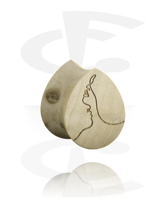 Tear-shaped double flared plug (wood) val vel laser engraving "one line design face"