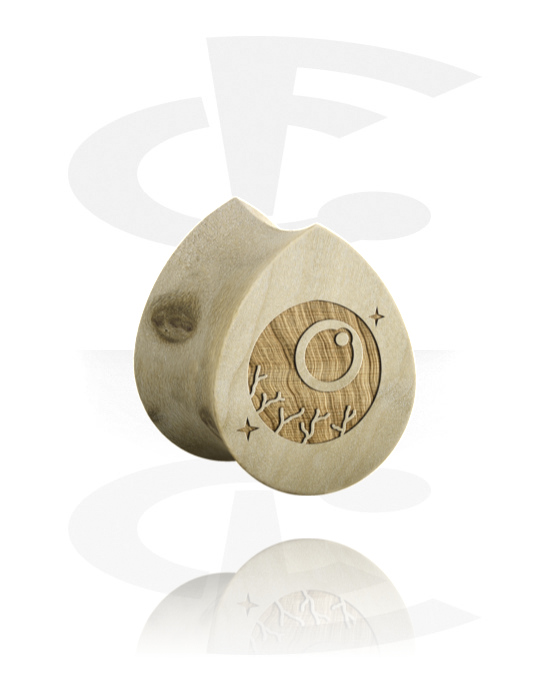 Tear-shaped double flared plug (wood) val vel laser engraving "Halloween design"