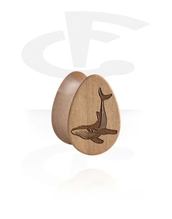 Tear-shaped double flared plug (wood) val vel laser engraving "humpback whale"