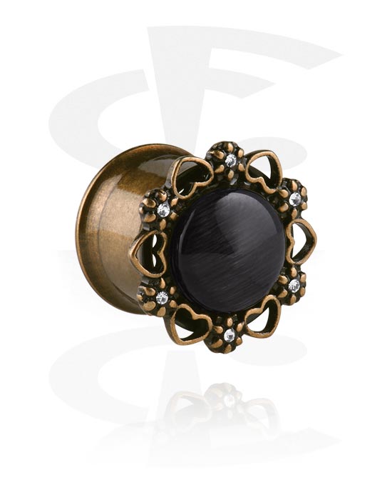 Double flared tunnel (surgical steel, antique copper) val vel Szív dizájn és Kristálykövek