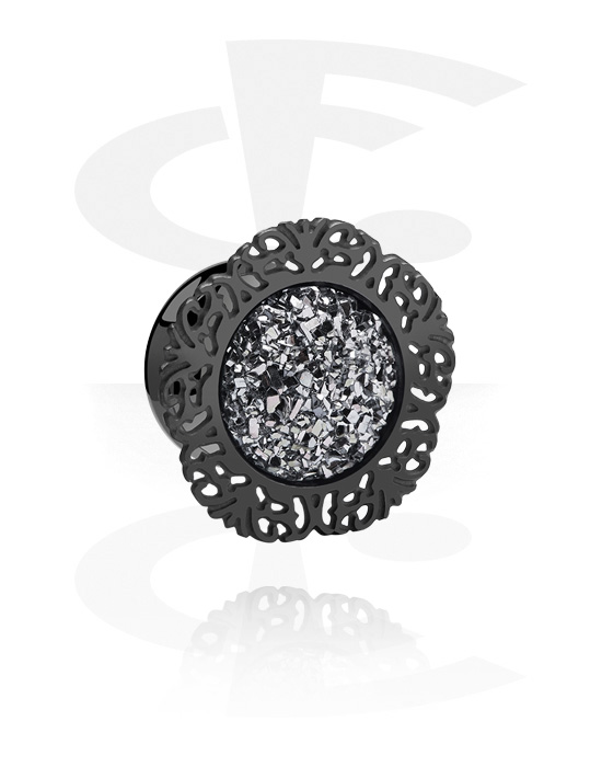 Double flared tunnel (surgical steel, black) val vel vintage design és diamond look