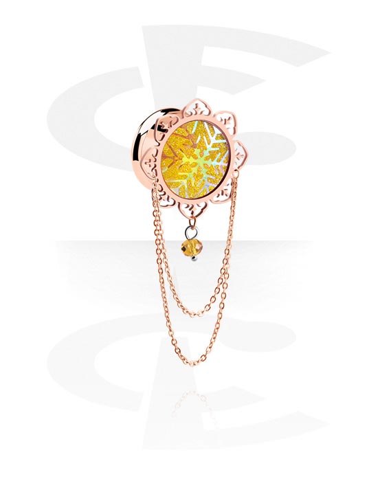 Double flared tunnel (surgical steel, rose gold) val vel Hópehely dizájn és lánc