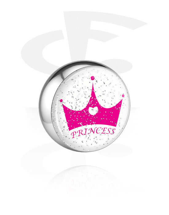 Ball for 1.6mm threaded pins (surgical steel, silver, shiny finish) val vel "princess" lettering