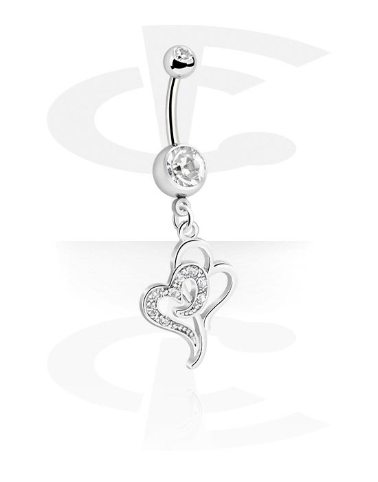 Belly button ring (surgical steel, silver, shiny finish) val vel szív függő és Kristálykövek