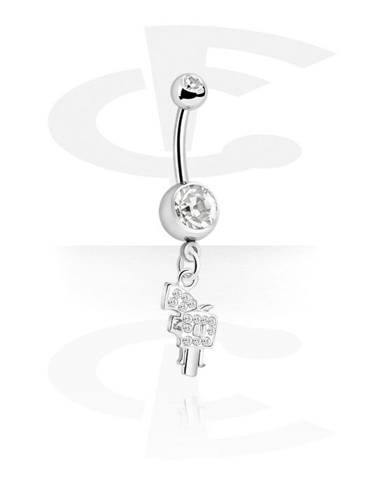 Belly button ring (surgical steel, silver, shiny finish) val vel pistol charm és Dísz