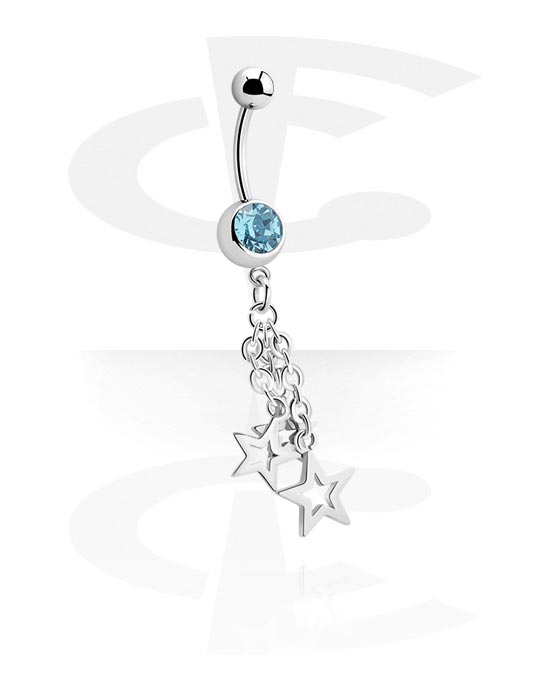 Belly button ring (surgical steel, silver, shiny finish) val vel csillag függő és Kristálykő