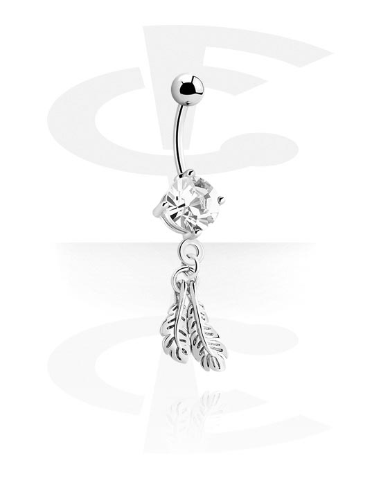 Belly button ring (surgical steel, silver, shiny finish) val vel leaves és Kristálykő