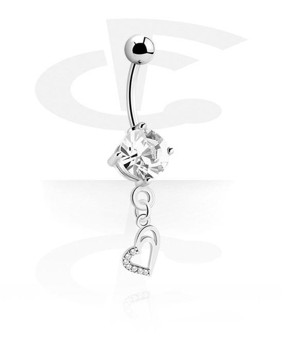 Belly button ring (surgical steel, silver, shiny finish) val vel szív függő és Kristálykövek