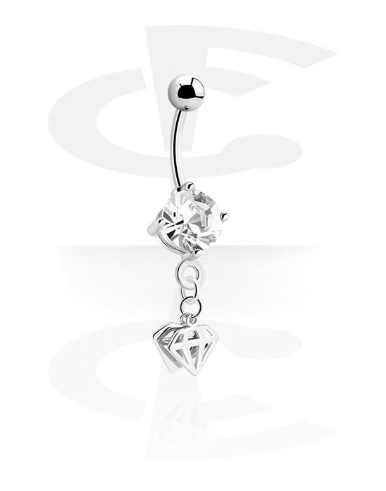 Belly button ring (surgical steel, silver, shiny finish) val vel Gyémánt dísz és Kristálykő