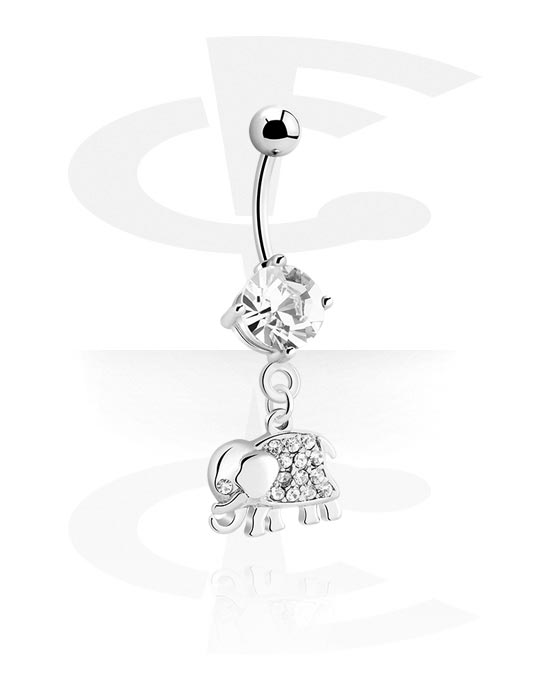 Belly button ring (surgical steel, silver, shiny finish) val vel elefánt függő és Kristálykövek