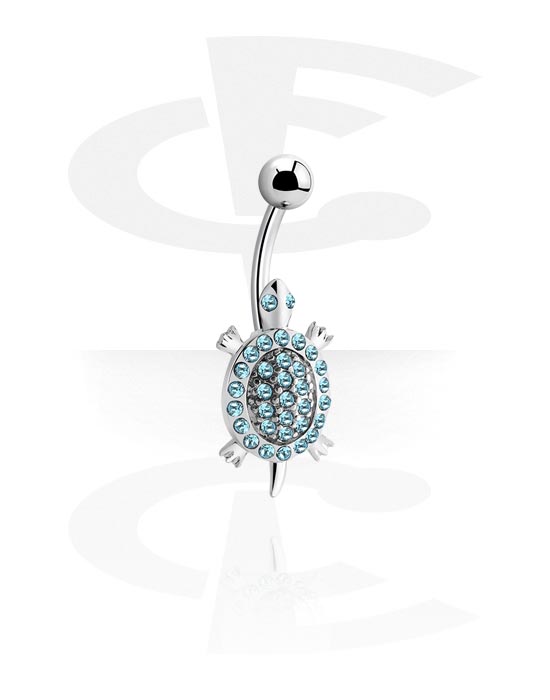 Belly button ring (surgical steel, silver, shiny finish) val vel turtle design és Kristálykövek