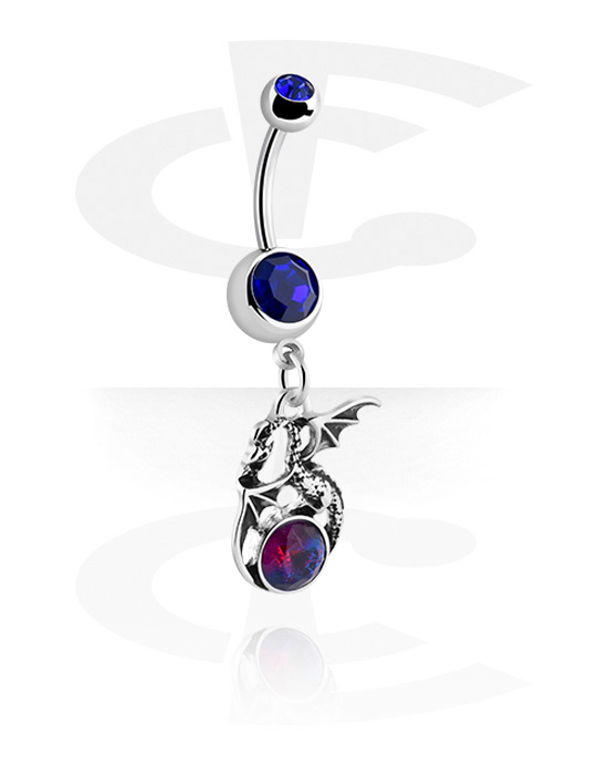 Belly button ring (surgical steel, silver, shiny finish) val vel dragon charm és Kristálykövek