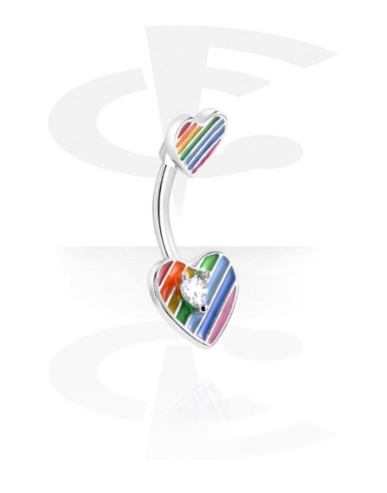 Belly button ring (surgical steel, silver, shiny finish) val vel Szív dizájn és Kristálykő