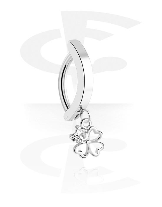 Belly button clicker (surgical steel, silver, shiny finish) val vel cloverleaf charm és Kristálykő