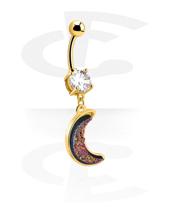 Belly button ring (surgical steel, gold, shiny finish) val vel Félhold dísz és Kristálykő
