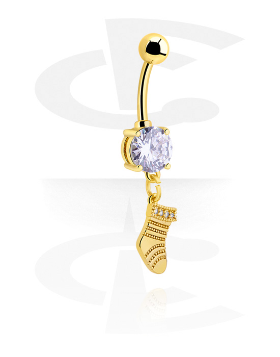 Belly button ring (surgical steel, gold, shiny finish) val vel X-mas harisnya és Kristálykő